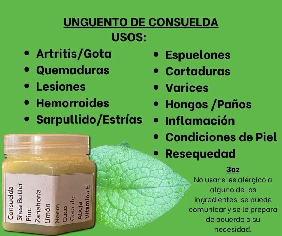 - Problemas de la piel: El ungüento también puede ser útil para tratar afecciones de la piel como eccemas o psoriasis, ya que la consuelda tiene propiedades calmantes y regeneradoras.